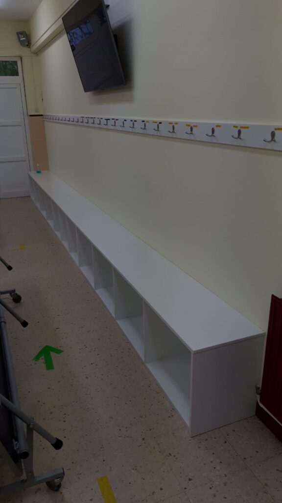 🔸Facer unha bancada para que @s nen@s esperen sentados á hora da saída e ademáis sirva para gardar as mochilas ordeadas