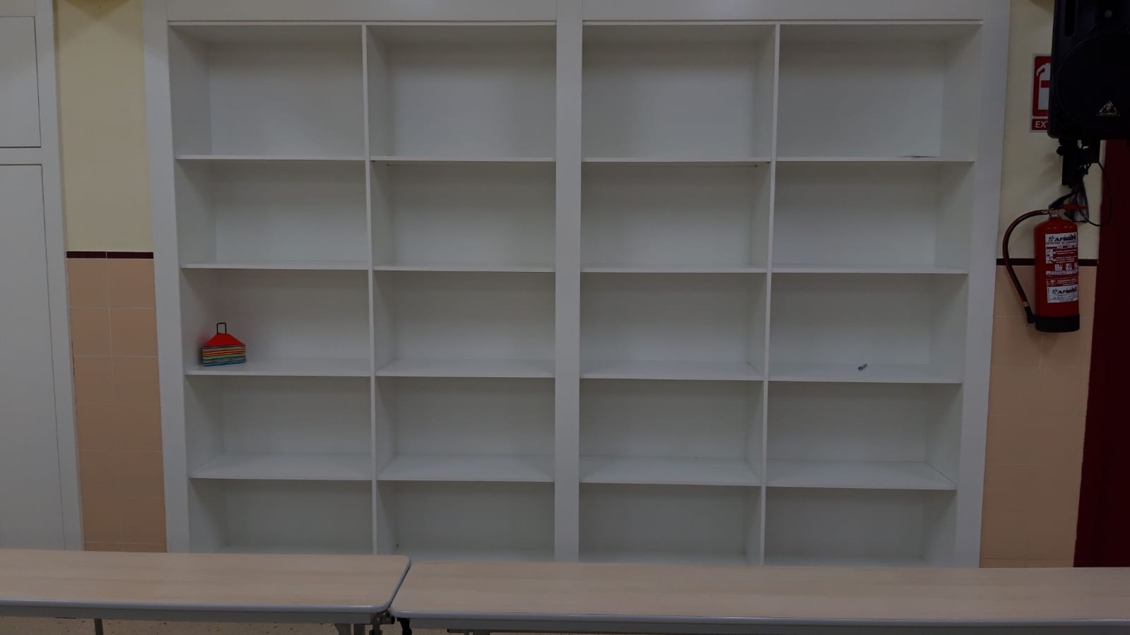 🔸 Armarios empotrados para gardar mochilas e material